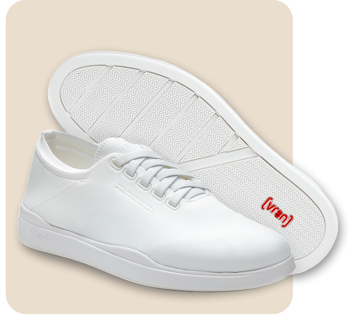 [vrsn] shoes were validated by over 30 podiatrists for pain alleviation. They feature proper arch support, shock absorption, and alignment to help reduce foot discomfort. 90-day guarantee included.