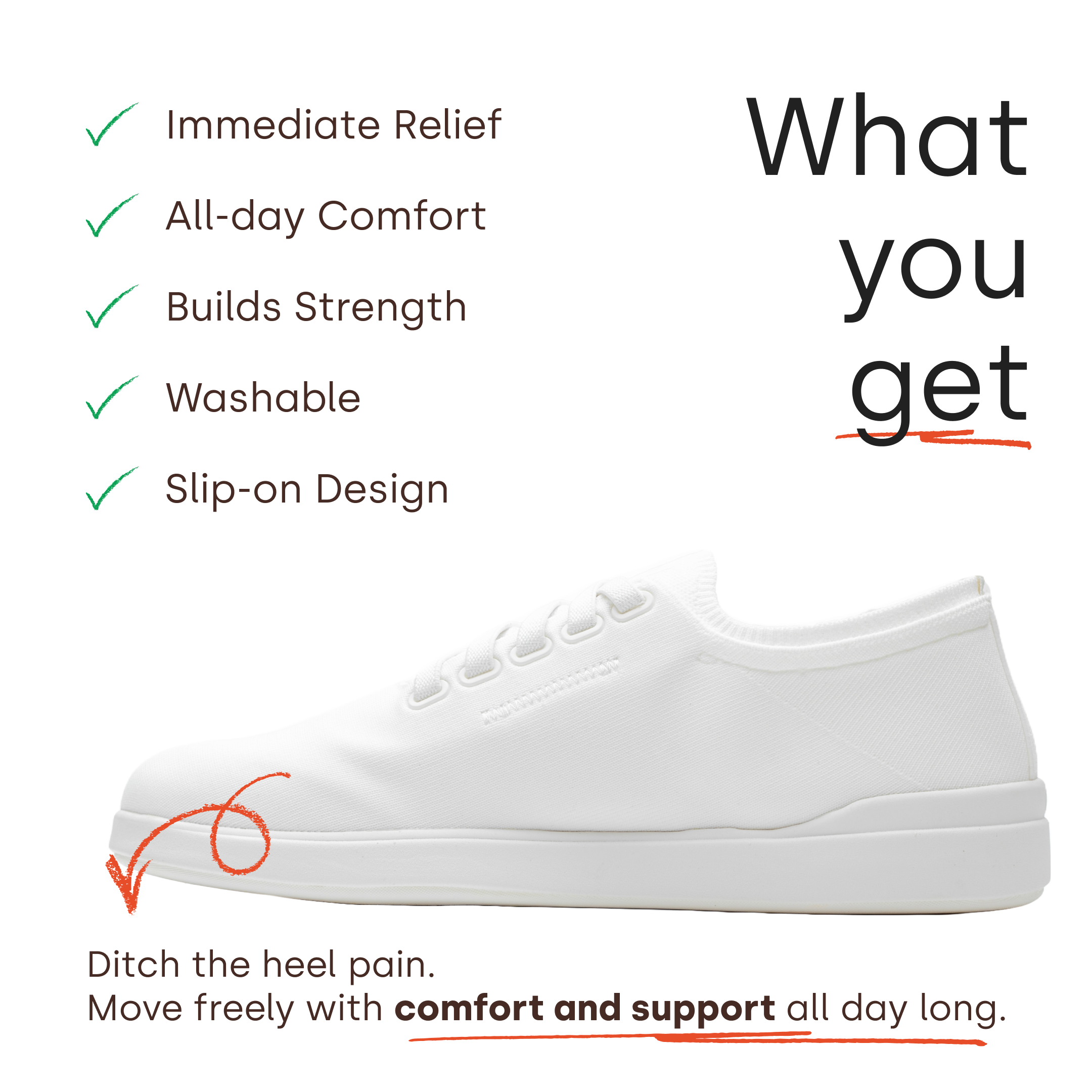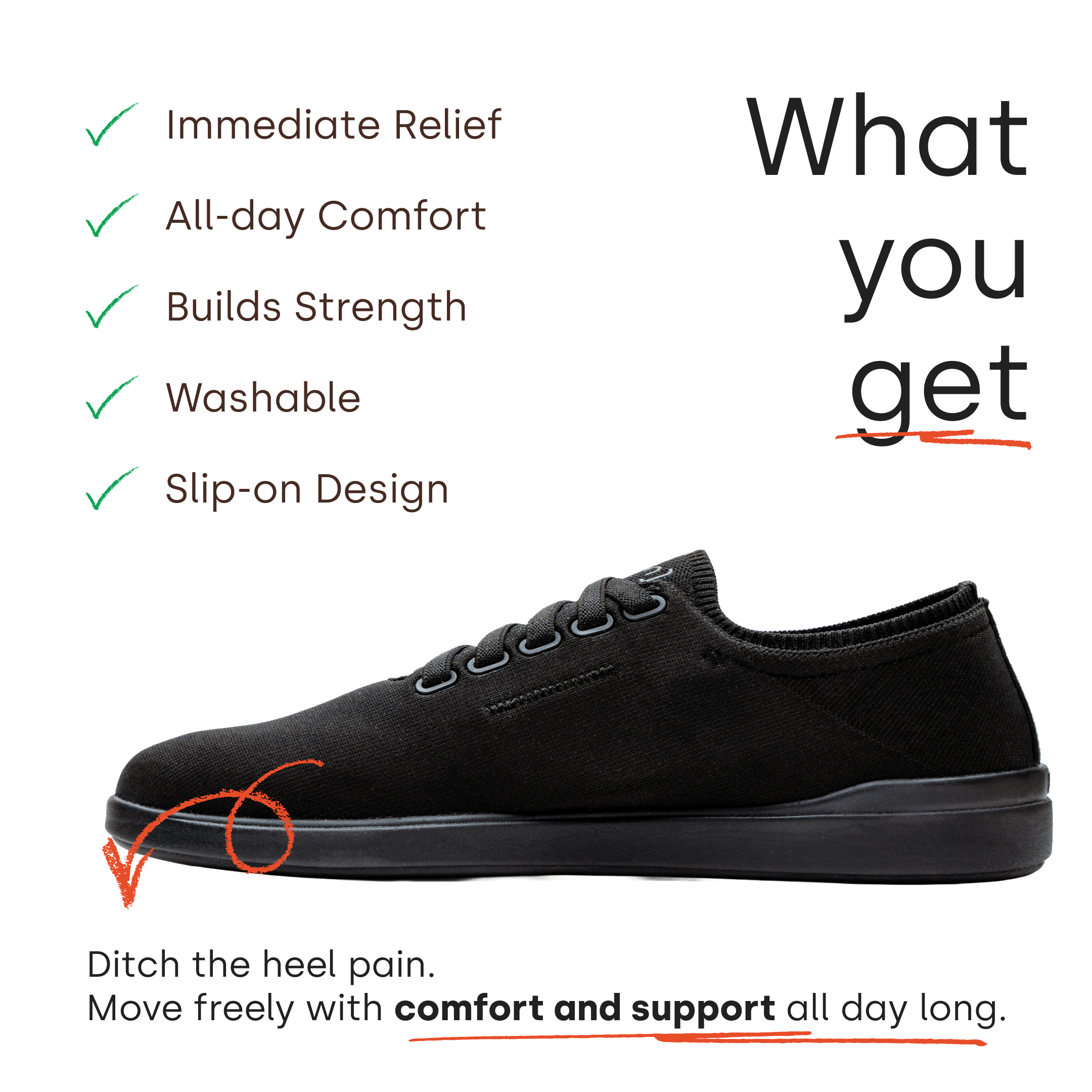 Yes. Our gentle arch support recreates your foot's natural shape, reducing strain on the plantar fascia and preventing arch collapse. Less pressure on your heel, less pain with every step.